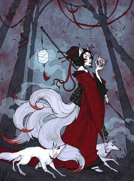 Un Dios andrógino semi desnudo y elegante, cubría las partes esenciales de su cuerpo con una toga, ‘’¿Puedes hacerme un favor?’’ ‘’¿Puedes vengar y hacer justicia?’’ ‘’¿Quieres proteger a tu familia y a tu pueblo?’’ ‘’¿Vas a proteger esta región con tu ultimo aliento?, Joven Kitsune…’’ Renuncia a esta vida y ven mi, (Inari, Dios de los zorros)